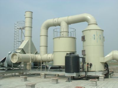 ??處理腐蝕性的可溶性氣體或液滴或微粒的空氣污染防治設(shè)備,自制程中產(chǎn)生的廢氣,進(jìn)入洗滌塔后,廢氣流經(jīng)填充層時,洗滌液自噴嘴均勻噴灑于填充材表面以保持潤濕,同時廢氣與洗滌液在充分潤濕的填充層相互接觸,通過物理與化學(xué)吸收作用將廢氣中的污染物質(zhì)祛除,然后此飽含水份的氣體必須經(jīng)過除霧器移除多余的水份,最后移除水分后的潔凈氣體才可直接排放至大氣之中。